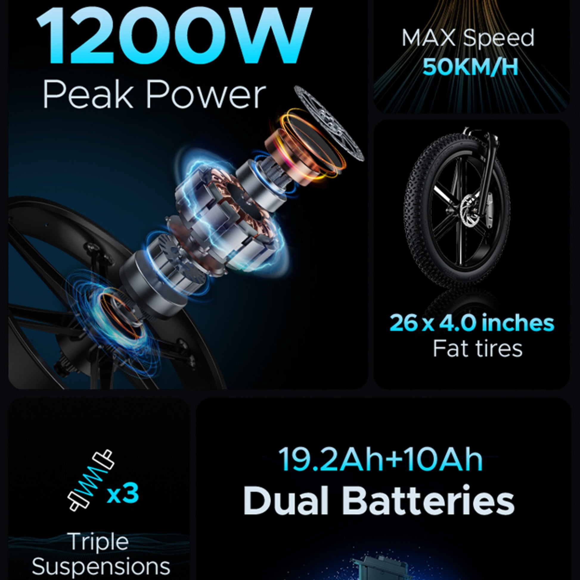 Hub & Power: Integrated Hub Motor with 1000W power